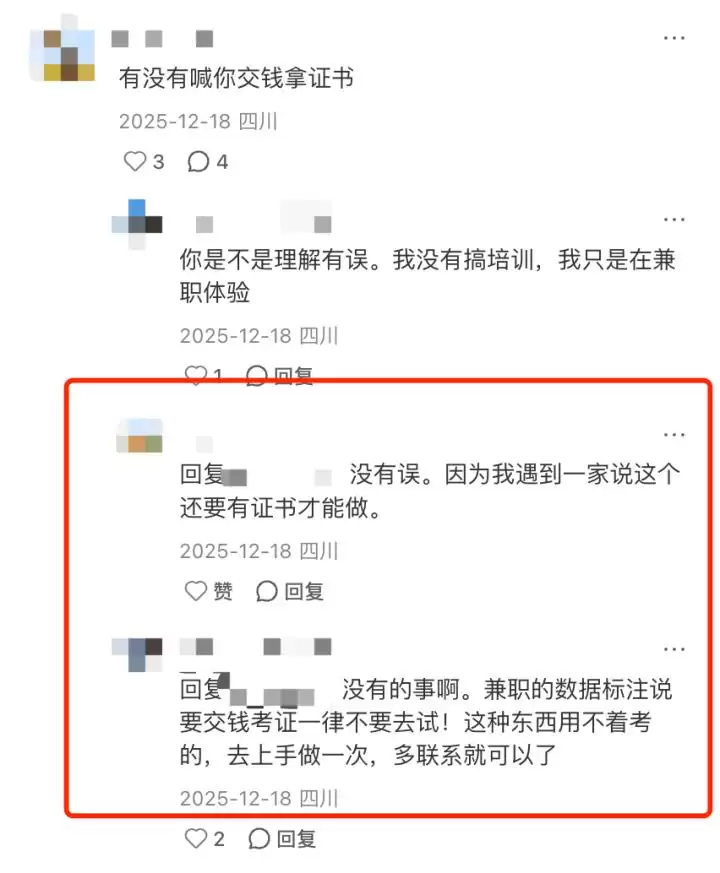 在AI数据标注员这个职位上,呈现出一种分化的景象:已经入行的“老人”身心俱疲;而等待入行的“新人”,在AI这件时髦外衣的包装下,选择付费来消除内心的恐慌。十年前“打字员兼职先交培训费”的套路,与今天“AI数据标注师培训费”的戏码,收割的往往是同一批人——那些最渴望改变&现状、最容易被风口故事打动的普通人。