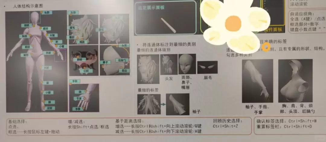 时至今日,AI数据标注的工作内容也已不断细分和升级,早已不止于框选红绿灯和行人。像吴伶被分配到的,就是动画人物3D建模的标注任务,需要日复一日地将模型上的头发丝、眼睛、鼻子等部件层层拆分、归类。其原理在于,通过人工将这些细节信息录入数据库,当数据量积累到一定程度,AI大模型便能学会自动识别。