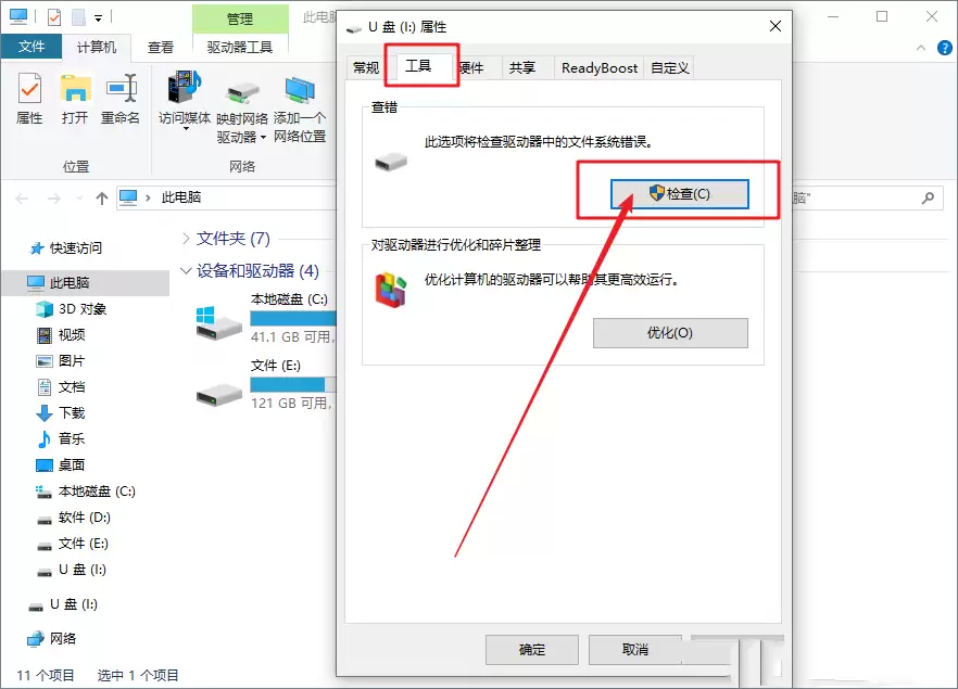 2. 在弹出的属性窗口中,切换到“工具”选项卡,点击“查错”区域下的“检查”按钮。