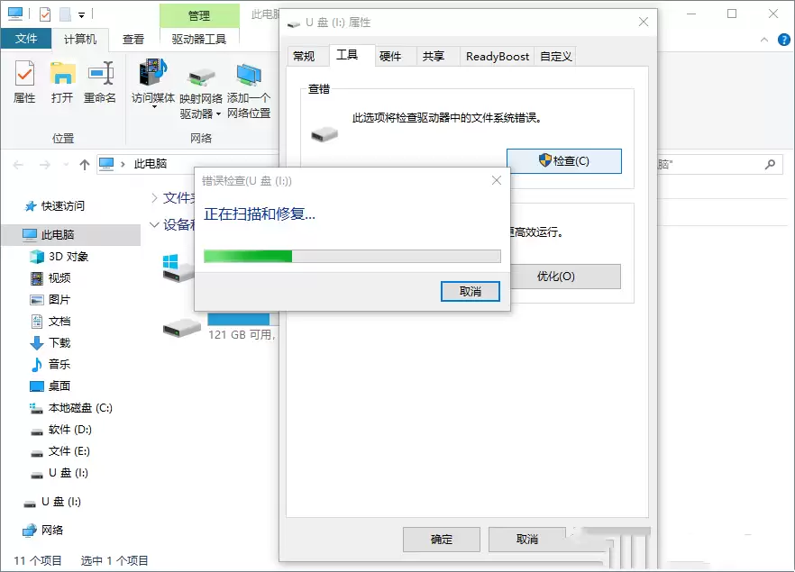 4. 等待修复过程完成。成功后,再次打开“此电脑”,通常就能正常访问移动硬盘里的数据了。