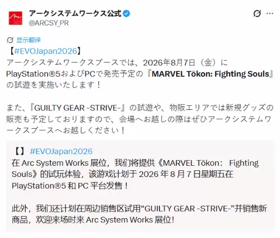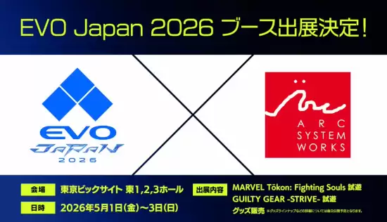 消息的热度,随着近期一则官方公告再次升温。Arc System Works正式宣布,将携旗下作品亮相EVO Japan 2026格斗游戏大会。这场格斗界的年度盛事定于2026年5月1日至3日,在东京国际展示场举行。对于前往现场的玩家而言,这无疑是个好消息:不仅可以试玩到期待之作,还能同步购入全新发布的周边商品。