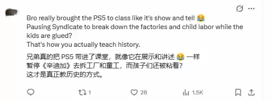 从视频中可以清晰观察到,学生们完全被这种生动形式所吸引,个个全神贯注。他们的目光紧跟着游戏主角雅各布·弗莱的步伐,仿佛通过这扇数字之窗,直接“穿越”到了那个烟囱林立、蒸汽机轰鸣的工业时代,真正实现了“走进”历史现场。这种将游戏应用于教学的模式,在社交媒体评论区收获了广泛共鸣与好评。有网友赞叹:“这种教学方法太超前了,简直是课堂革命!”有评论敏锐地指出了其深层教育意义:“游戏构建的场景能让学生最直观地理解当时工人的生存状况,包括童工问题的严峻性。”更有同行教师留言称:“这给了我很大启发,真想在自己的课堂上尝试类似的教学创新。”