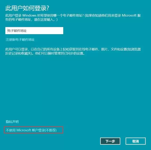 1. Microsoft账户登录:这需要你拥有并输入另一个微软账户的邮箱和密码。选择它,账户设置会和微软云端服务同步。