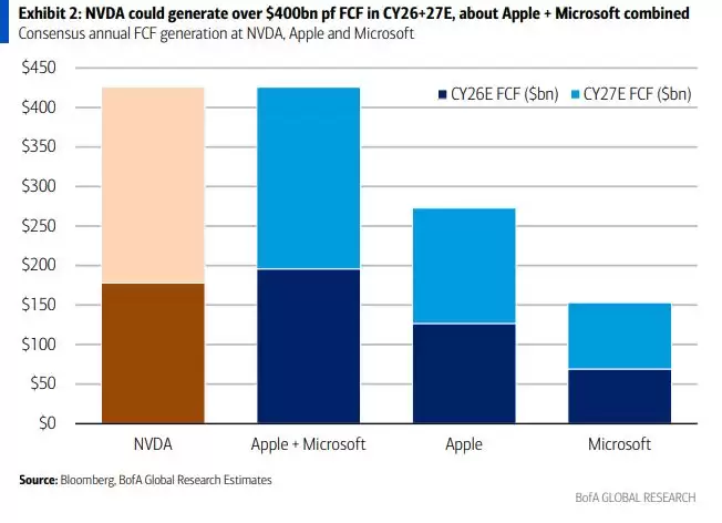 眼下看英伟达的估值,焦点似乎正在发生微妙的转移。它越来越不像一个单纯的AI景气度问题,反倒更像一个关于“现金分配”的算术题。美银证券最近就换了个视角,不再只盯着算力需求和产品迭代,而是回到了一个更基础的命题上:当生态投入的高峰期逐渐过去,英伟达如何处置它那越来越惊人的自由现金流?能否用一种更确定的方式返还给股东,从而成为撬动估值重估的那根杠杆?