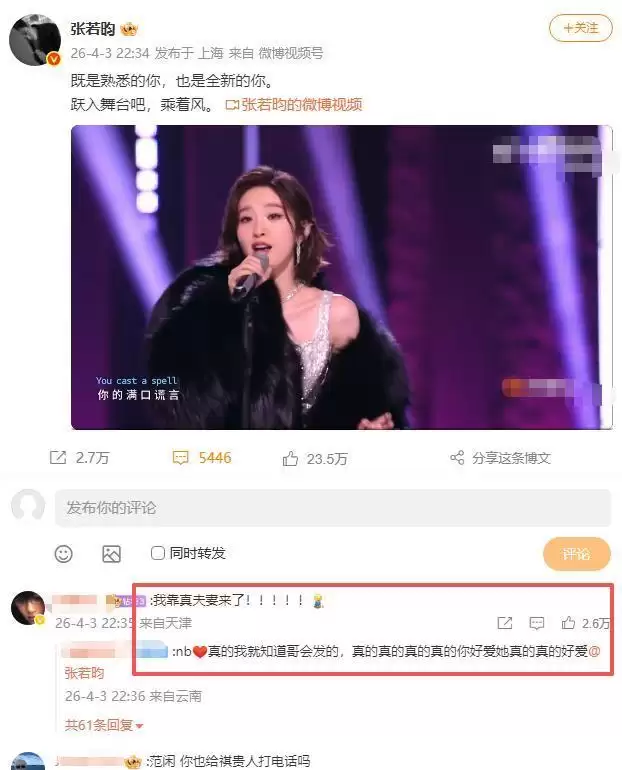 初舞台表现获得了不少正向反馈。张若昀场外的那条视频下,评论区的情感几乎一边倒——不仅是夸赞,更多的是为她的回归感到高兴。