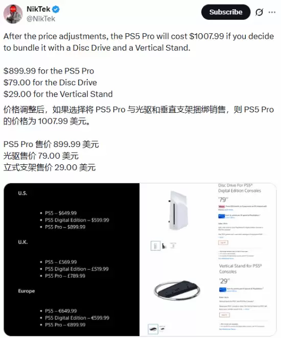 全套要上千美元!PS5Pro定价竟是PS4Pro的2.5倍