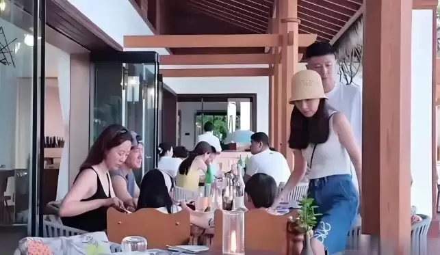 妻子孙骁骁虽未出现在合影镜头里,但在不远处安静等候,状态放松惬意。她陪伴女儿的画面,想来也是宁静而美好,构成了他们家庭生活的一角。