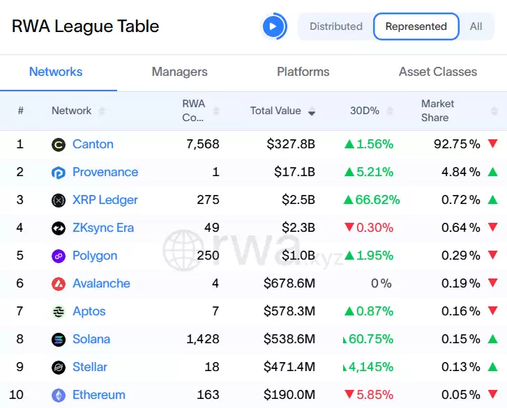 XRP 在代表型 RWA 排名中位列第三。