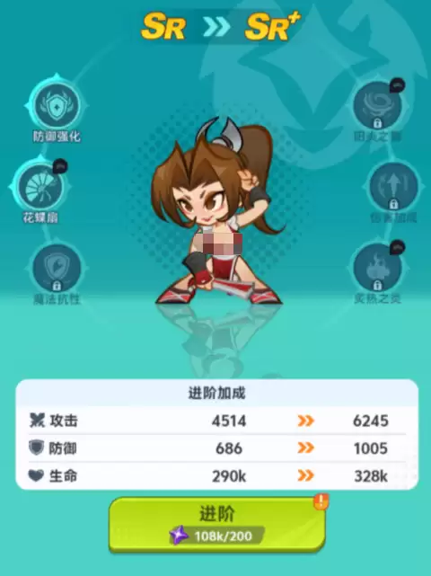 随着角色等级提升,天赋技能也会迎来质变。战技“花蝶扇”每次释放都有40%的几率抛出一把烈焰扇子,造成高达300%的攻击伤害。在对战中,她的魔法抗性还能为己方增加10%的生命力,攻防一体。当不知火舞晋升至SSR级别,将解锁特技“阳炎之舞”——每隔一段时间,便会召唤火焰随机攻击一名对手,不仅造成300%的魔法伤害,还附带1秒钟的眩晕效果,控制与输出兼备。