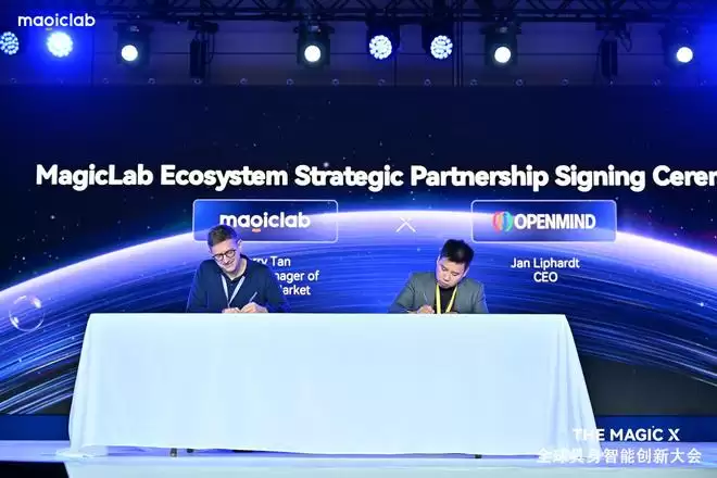 大会现场,魔法原子与硅谷AI企业Openmind、PrismaX AI、Cosmicbrain AI、Physis等生态伙伴达成了签约,进一步扩容其全球生态版图。据悉,“千景共创”计划将围绕技术互补、资源互通与长期共生三大核心展开。具体而言,魔法原子将向生态伙伴开放定向开发任务,并提供硬件样机、开发资金、核心技术、项目导流及品牌资源等全方位支持。这一切,旨在降低机器人应用开发的门槛,全面提升从技术验证到场景落地的转化效率。