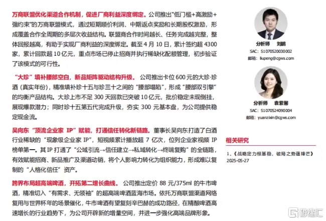 与此同时,公司的核心大单品珍十五在今年3月升级至第五代,精准锚定300元价位。未来,凭借万商联盟强大的区域市场渗透力,珍十五有望进一步下沉至县乡级市场,成为公司业绩的“稳定器”。