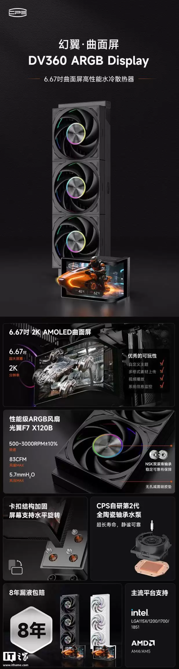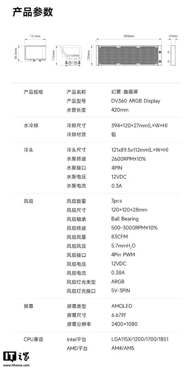 超频三首款曲面屏一体式水冷产品“DV360幻翼”发售,1399元