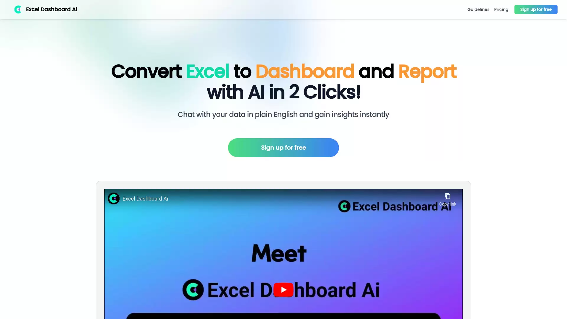 Excel Dashboard Ai- 将 Excel 文件即时转化为仪表板和报告的 AI 工具