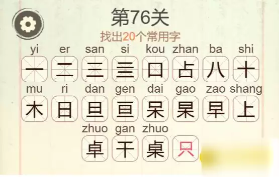 《聪明开局吧》第76关桌找出20个常用字攻略
