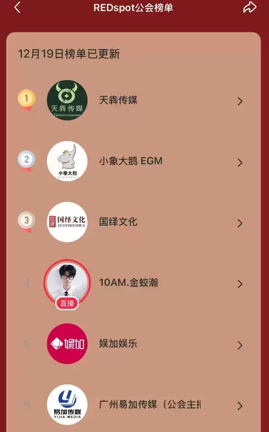 近期,小红书启动了其首个年度盛典,设立了“年度实力爱播榜”、“年度直播红人榜”及“年度荣誉公会榜”三大赛道。值得注意的是,天犇传媒、小象大鹅、娱加娱乐等在其他平台已是头部的公会,早已悄然布局,并在公会榜上名列前茅。新平台的战争,从一开始就是高段位玩家的游戏。