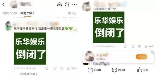 消息公开后,“乐华娱乐倒闭了”的绿色大字报被刷满了各大娱乐号的评论区,还有小部分极端粉丝为此在微博上宣布脱粉。纵使内娱艺人粉丝厌恶自家经纪公司已是常规操作,但王一博粉丝们的“恨”,在内娱生态里依然称得上是最有理有据的——这个“据”,就是乐华娱乐自家的财报。