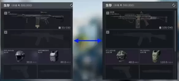 这次改动,生存套的配置有了个大升级。原先的G3战斗步枪被换成了M249轻机枪,护甲和头盔也统一换成了四套里最“硬”的战术头盔和战术背心,还附带了甲修和头修。这么一来,生存能力可以说是直线飙升。当然,也有个小遗憾:套装自带的子弹还是三级弹。不过问题不大,完全可以自己带四级弹进去,而且M249这把枪在机密图里本来就好用,手感不差。
