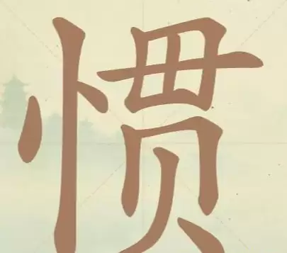 先看这个“惯”字,典型的左右结构。关键在右边那个“贯”字。它的上半部分,其实是“毋”字的一种变形写法,而下半部分,则是一个清晰的“贝”字。从这个主体框架出发,那些基础的笔画和部件就浮现出来了——比如“一”、“人”、“贝”、“口”。把这些基础字再组合一下,“员”(口+贝)和“贯”本身也就出来了,最后别忘了题目本身的“惯”字。按照笔画的顺序和结构逻辑逐一排查,这关就能轻松拿下。