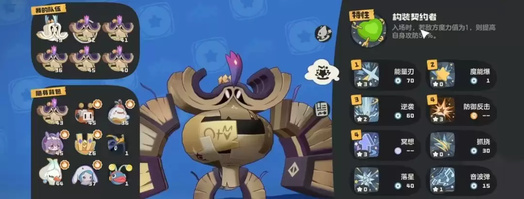 结合其特性与种族值分布,一套均衡且高胜率的技能组合为:能量刃、魔能暴、逆袭和防御反击。这套配招攻守兼备,能量循环流畅。魔能暴是核心魔法输出技,释放时会消耗所有积蓄的能量,消耗点数越多造成的伤害越惊人。能量刃则属于成长型物理技能,基础威力70,每次成功抵挡对手攻击后,威力可永久提升30点,具备优秀的叠加潜力。逆袭遵循同样的“高能耗高回报”机制,作为物理伤害的有效补充。而防御反击堪称生存核心,开启后获得80%伤害减免,并在成功防御后为自己所有技能永久附加20点威力,实现越战越勇。