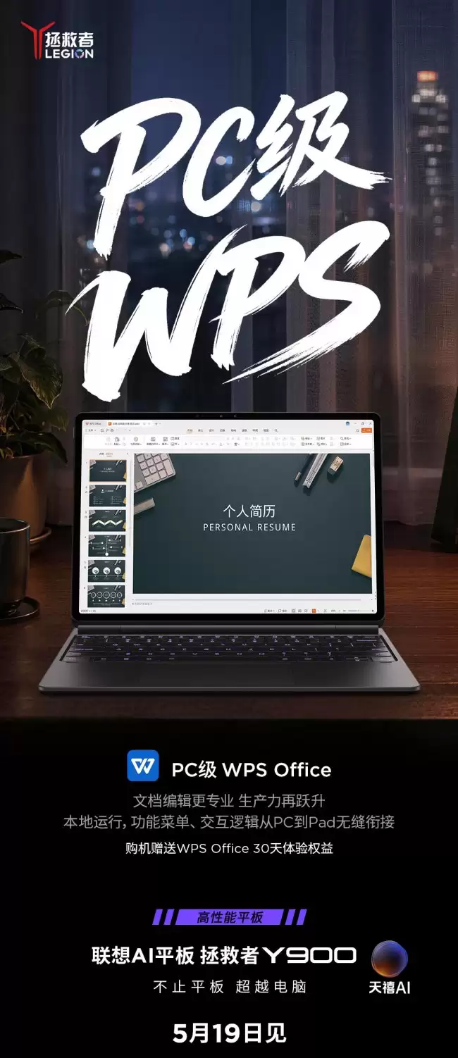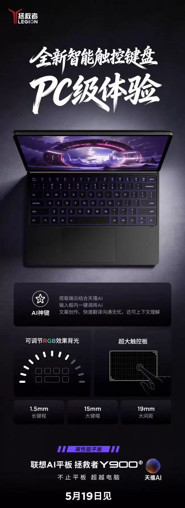 联想拯救者Y900 AI平板官宣全新智能触控键盘,主打“PC级体验”