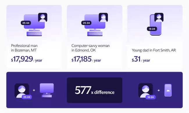 这份报告的底层逻辑相当清晰:它利用了2025年的实时广告竞价数据,对超过54000个人口统计资料进行了深度分析。其目的,就是为了精准测算出,广告商为了接触到不同特征的你,究竟愿意付出多少代价。