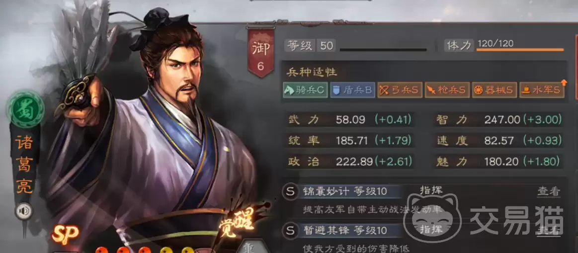 对于SP诸葛亮,兵书推荐【励军】、【速战】和【援其必攻】的组合。属性加点则要以速度优先,确保他的减伤和解控效果能在对手行动之前生效,抢占先机。