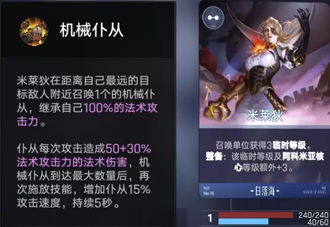 在亚连之后,需要引入米莱狄来进一步放大阵容优势。作为日落海阵营的优秀单位,米莱狄能提升召唤物的临时等级,其触发的整备效果,能再次拔高我方的核心能力。当阵容整体战力感到不足时,米莱狄的觉醒需求就变得非常紧迫,觉醒后的她提供的战力提升是立竿见影的。她的技能会在距离最远的敌人附近召唤机械仆从,继承其100%的法术攻击,是制造战场混乱和补充伤害的利器。
