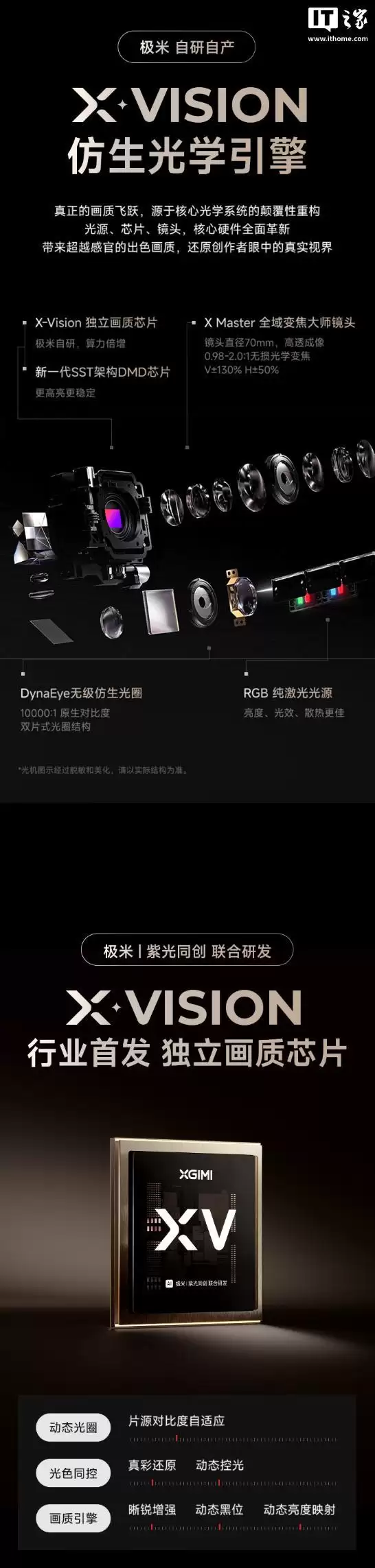 外观上,系列产品采用了全金属机身搭配密集竖向格栅的设计,质感上先下一城。但真正的重头戏在画质引擎内部。其中,定位更高的X50 Ultra Max搭载了极米与紫光同创联合研发的X-Vision独立画质芯片。这颗芯片的作用,在于对投影画质进行智能且精细的调控,最终实现了10000:1的原生对比度。这个数字意味着什么?它标志着极米成为了国产投影品牌中,首个突破“万级”对比度大关的产品。当然,需要指出的是,其显示芯片仍旧是0.47英寸的DMD方案。