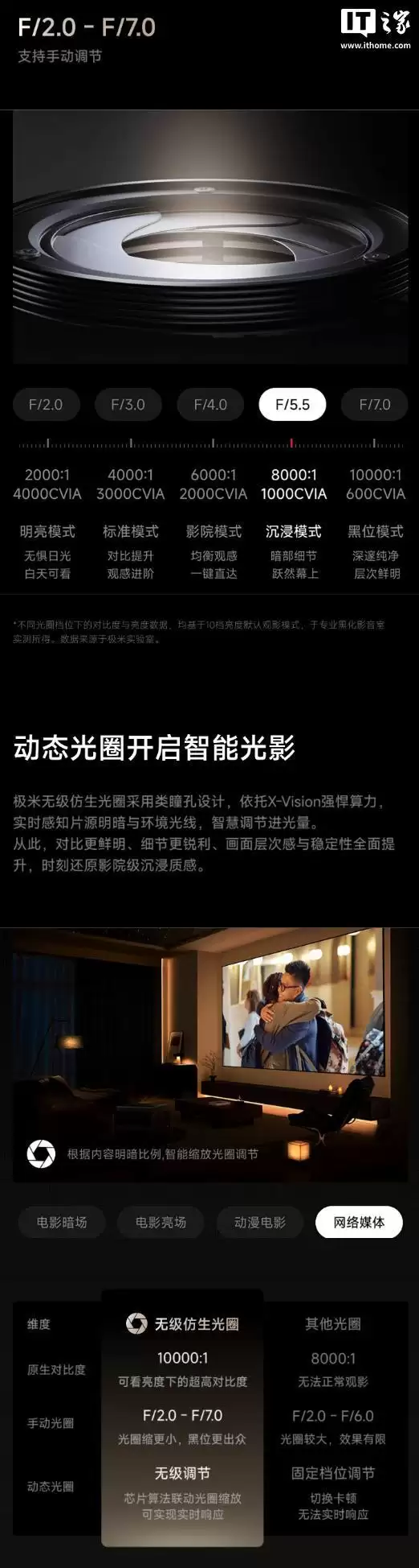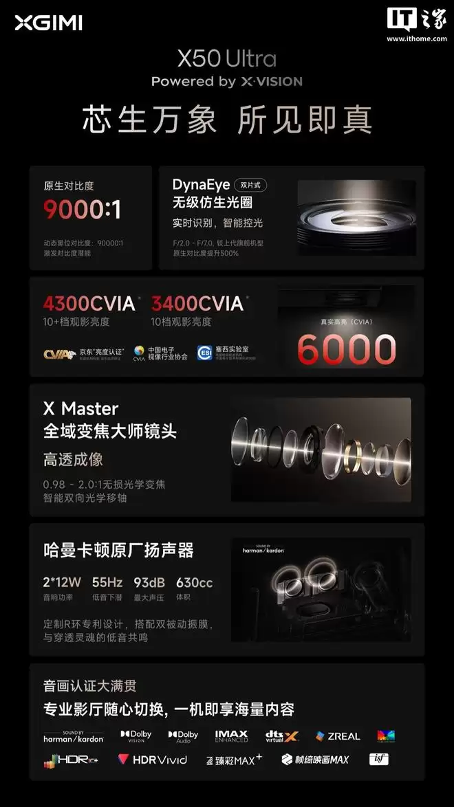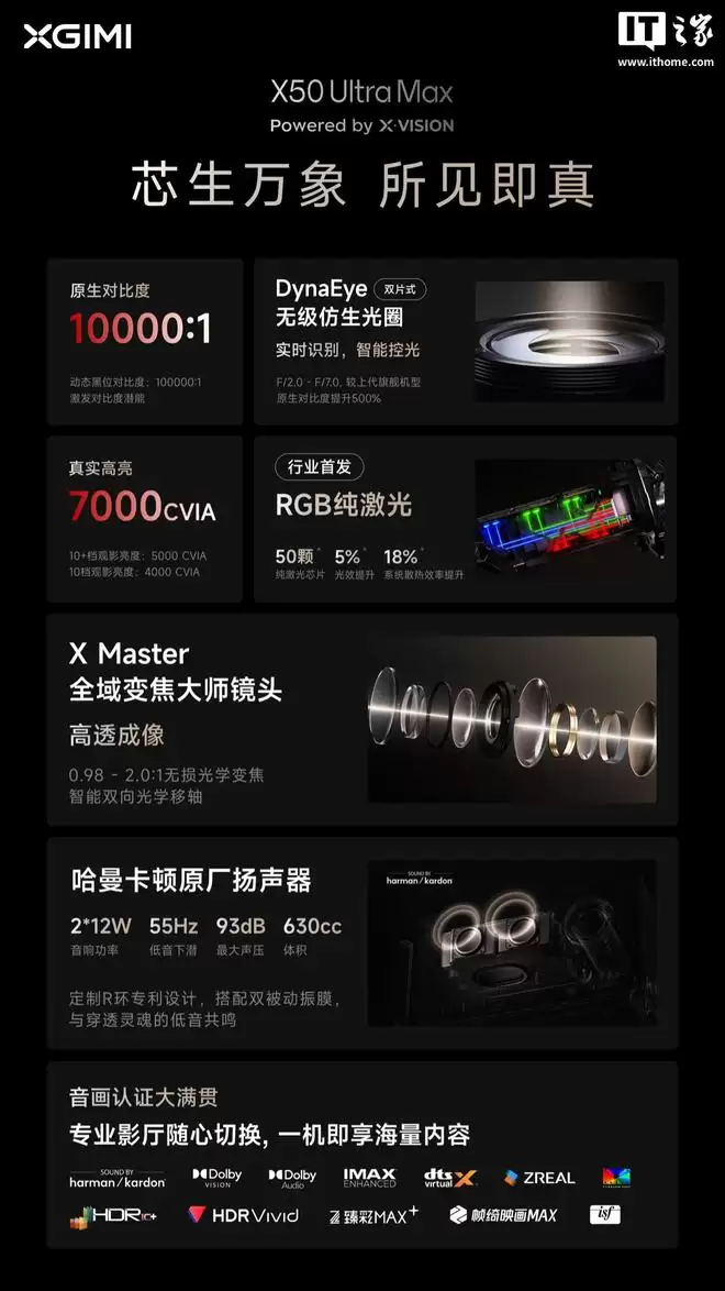 光源技术的革新是另一大亮点。X50 Ultra系列行业首发了RGB纯激光光源,这为其带来了支持全天观看的7000 CVIA流明真实高亮度。在认证方面,它获得了IMAX ENHANCED认证,集多项专业影音认证于一身,堪称“大满贯”选手。同时,动态光圈技术也得以保留,与新的光源系统协同工作。