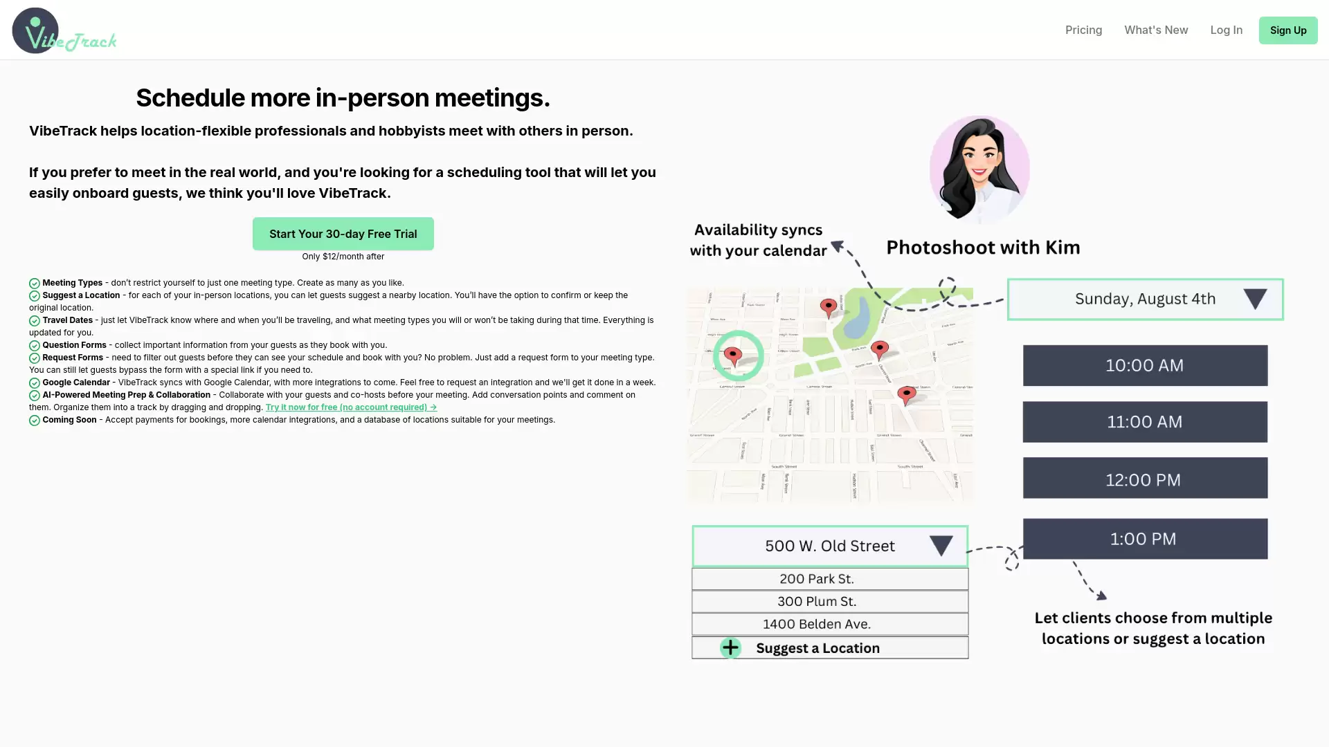 上手流程非常直观。首先,注册一个免费试用账户。接着,把你常用的Google日历连接进来,让VibeTrack对你的时间安排了如指掌。然后,你就可以创建不同的会议类型了——是线下面谈、纯音频沟通,还是视频会议?随你选择。设定好你方便会客的时间块,一个专属的VibeTrack预约链接就生成了,直接分享给客人即可。