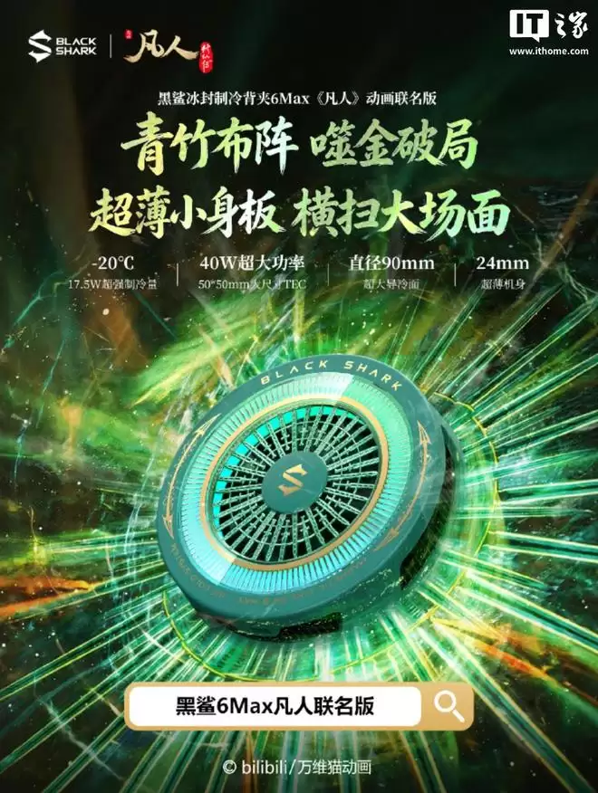 黑鲨冰封制冷背夹6 Pro/Max散热器新增《凡人修仙传》联名版本