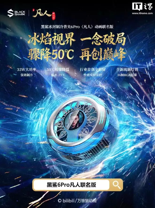 游戏装备圈的跨界合作又添新案例。近日,黑鲨游戏手机官方宣布,将为旗下颇受欢迎的冰封制冷背夹6 Pro与Max系列,推出《凡人修仙传》动画联名版本。新品定于5月8日正式开售,购买即赠联名周边,为硬核散热装备注入了一股国漫仙侠风。