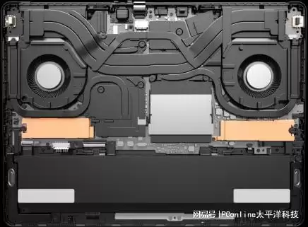 其采用了6热管+双风扇+六风道的豪华组合,热管规格也毫不含糊(包括2根10mm、3根6mm和1根2mm)。CPU和GPU均使用了导热系数高达8.5 W/m·K的相变硅脂,并支持风扇逆转除尘技术,能快速将核心热量导出,保持硬件长时间稳定运行。