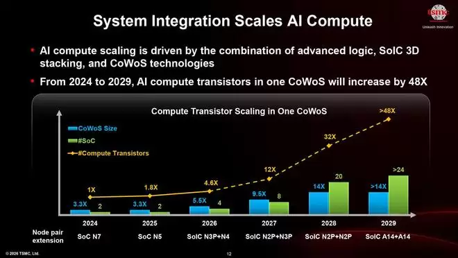 接下来的路线图非常明确:2025年,互连间距将缩小到6µm。而这还不是终点,按照台积电的预估,到2029年,这一关键尺寸将进一步微缩至4.5µm。持续的微缩,意味着更密的互连、更高的带宽和更强的整体性能,这无疑是面向未来算力需求的关键布局。