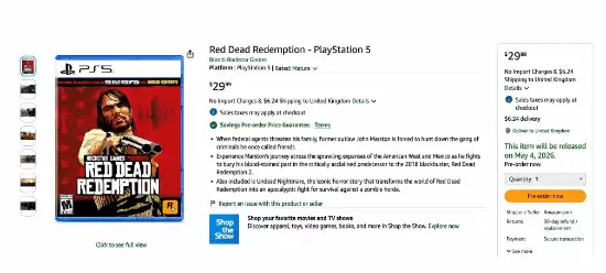 目前,玩家已经可以通过亚马逊预购到这款游戏的PS5实体光盘版。页面显示,其售价为30美元,而发售日期则定在了2026年5月4日——这个时间点看起来相当遥远,不免让人猜测其背后是否另有计划。