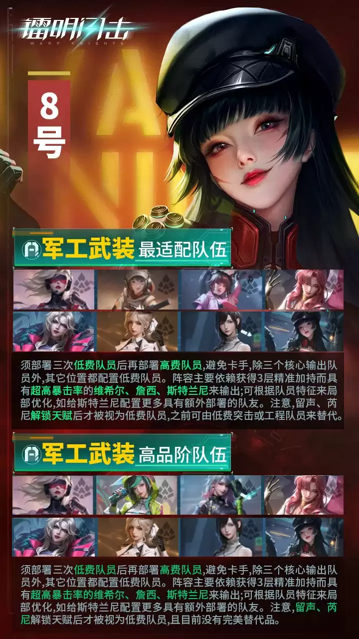 正确的操作逻辑是怎样的?通常需要先让重盾型前排顶上去吸收火力、固定敌人的朝向,为8号创造侧翼切入的机会。关键在于观察并抓住敌方“站桩”输出的短暂窗口期,再让8号发动致命一击。早期不少玩家开局就让8号冲锋,结果瞬间被集火击败,问题往往就出在这个节奏把握上。
