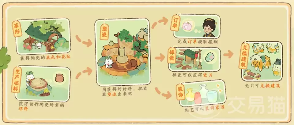 整个制瓷玩法围绕四座核心建筑展开,它们需要按条件依次解锁,仿佛一段循序渐进的学徒晋升之路。