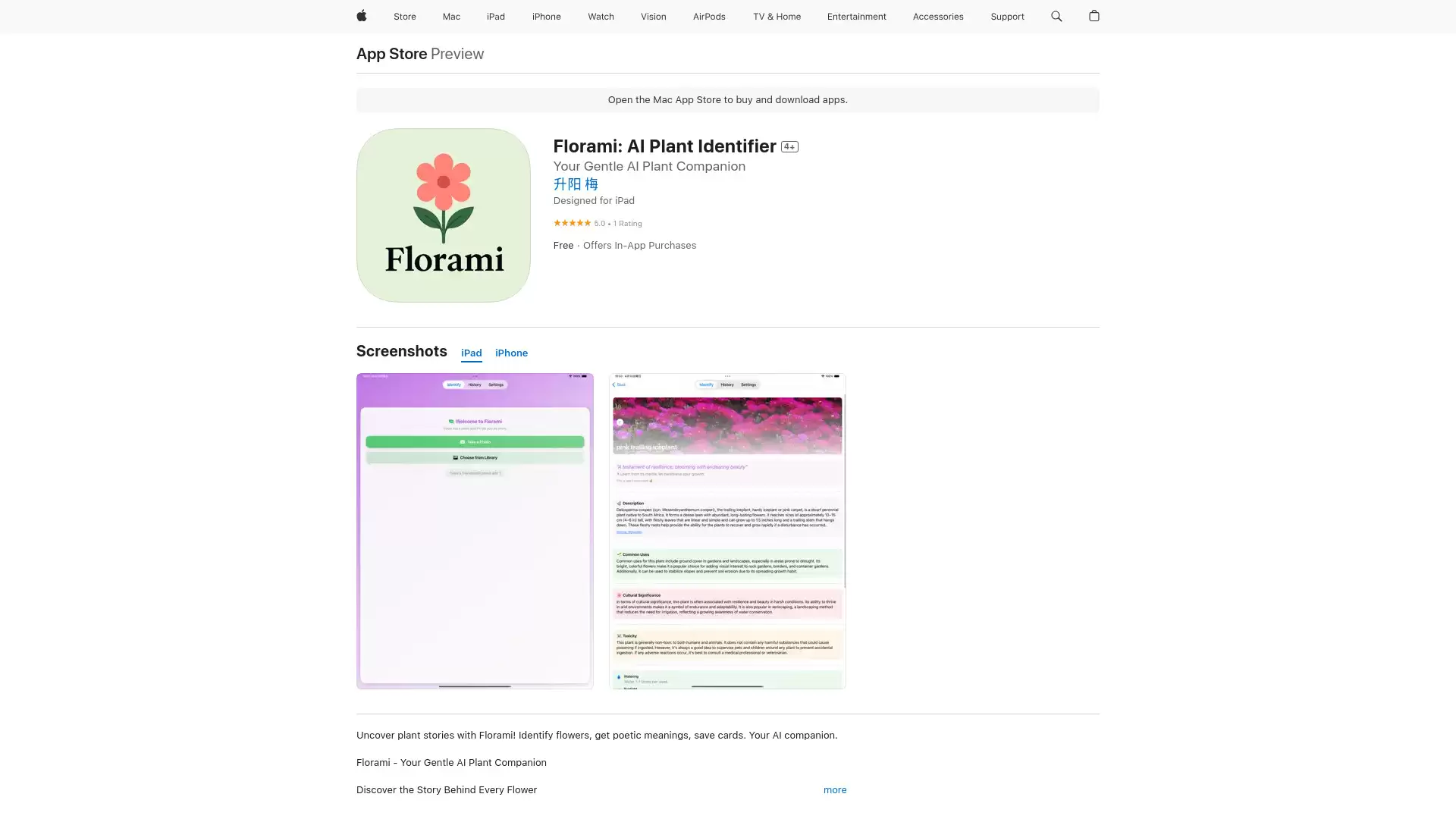Florami – AI Plant Identifier官网入口:https://apps.apple.com/us/app/florami-ai-plant-identifier/id6744268868