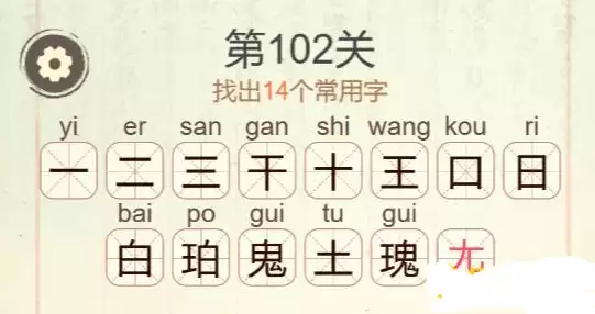 《聪明开局吧》第102关瑰找出14个常用字攻略