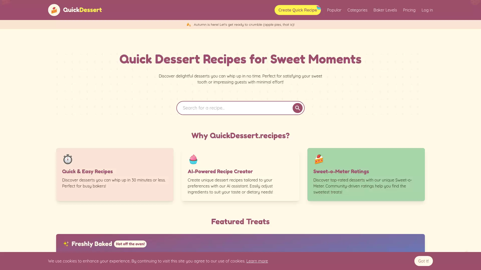 QuickDessert.recipes 的核心功能