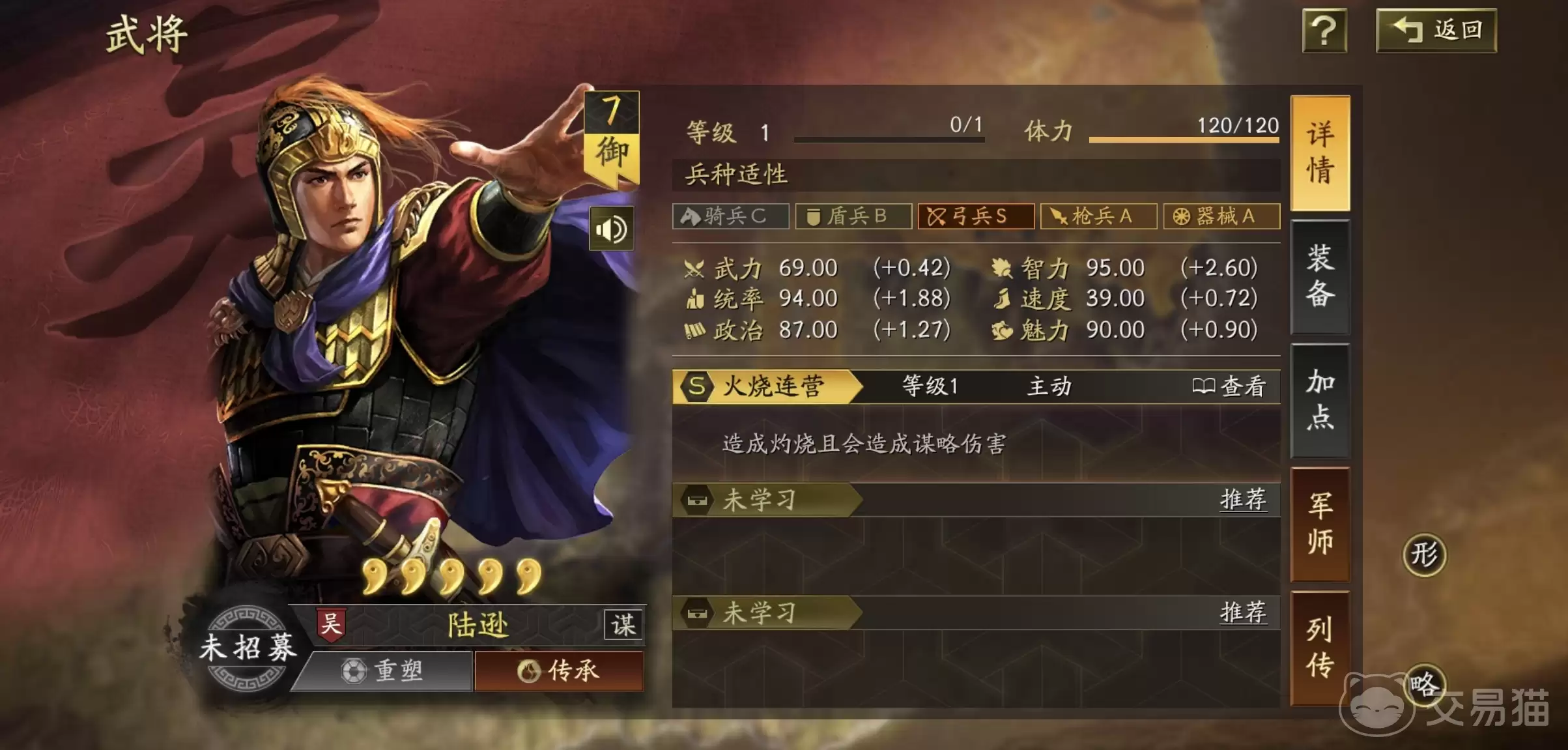 定位清晰,是构建阵容的第一步。陆逊属于S级弓兵,其核心价值完全体现在【火烧连营】上:这个战法不仅能造成可观的持续谋略伤害,还能为全体提供谋略加成,并概率施加震慑。一句话概括,就是输出、增益、控场三位一体。这种机制,注定了他天生就是队伍里的主C。在养成路线上,其实没有太多悬念——全程智力加点,最大化他的伤害能力和战法发动几率。至于战法搭配,太平道法与士别三日堪称黄金组合,一个提升爆发稳定性,一个增加生存容错,让陆逊在场上既能打又能站。