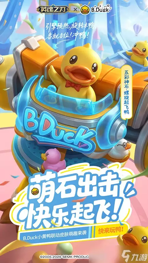 经过《英魂之刃》与B.Duck小黄鸭双方的精心筹备,一场备受期待的跨界联动终于要来了!《英魂之刃》×B.Duck小黄鸭联动活动,正式定档2026年5月1日开启。本次联动以“一起来玩鸭”为主题,整合了联动限定皮肤、创新玩法、专属福利等多元内容,旨在为各位魂友和粉丝们,带来一场萌趣与热血交织的跨界盛宴,共赴英魂大陆的欢乐之约。