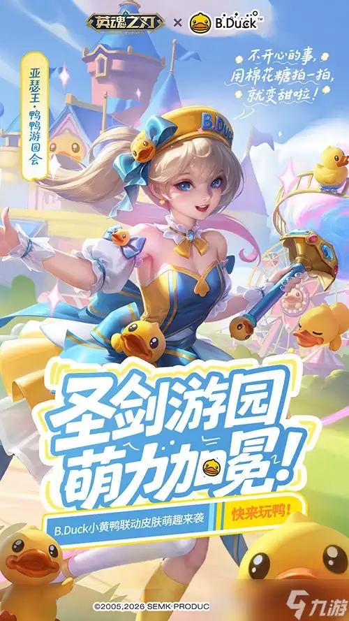 本次联动的核心亮点之一,无疑是结合游乐园主题重磅推出的两款限定皮肤。它们巧妙地在保留《英魂之刃》英雄特色的同时,深度融入了B.Duck小黄鸭的萌趣基因。