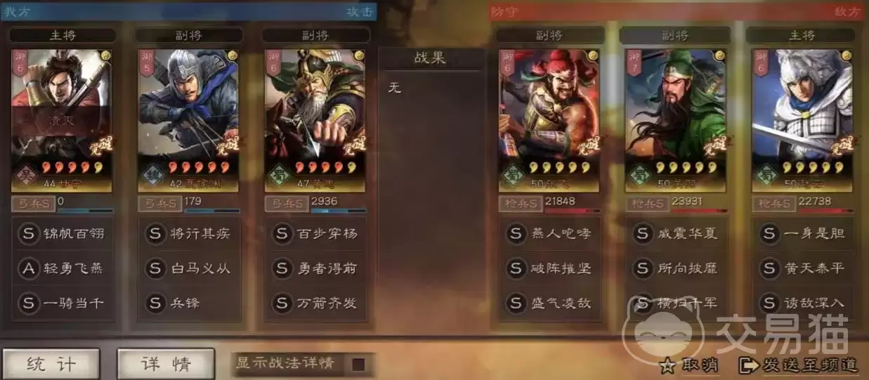 太史慈在这里转型为控制先锋,当锋摧决用来封印对手的被动和指挥战法,速乘其利则能稳定打出技穷。这里有个关键细节:需要确保太史慈的速度比吕蒙刚好快1点,这样才能让控制效果无缝衔接,不给对手任何喘息之机。兵书依然是以治击乱、神机和将威。
