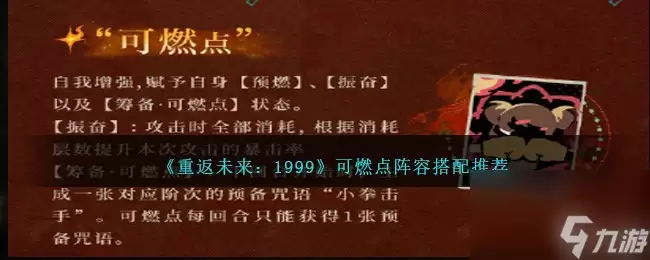 在重返未来1999中,狂想可燃点是一个极具挑战性但又充满乐趣的玩法。合理的队伍搭配能够让玩家在这个玩法中更加得心应手,下面就为大家推荐几套实用的狂想可燃点队伍。